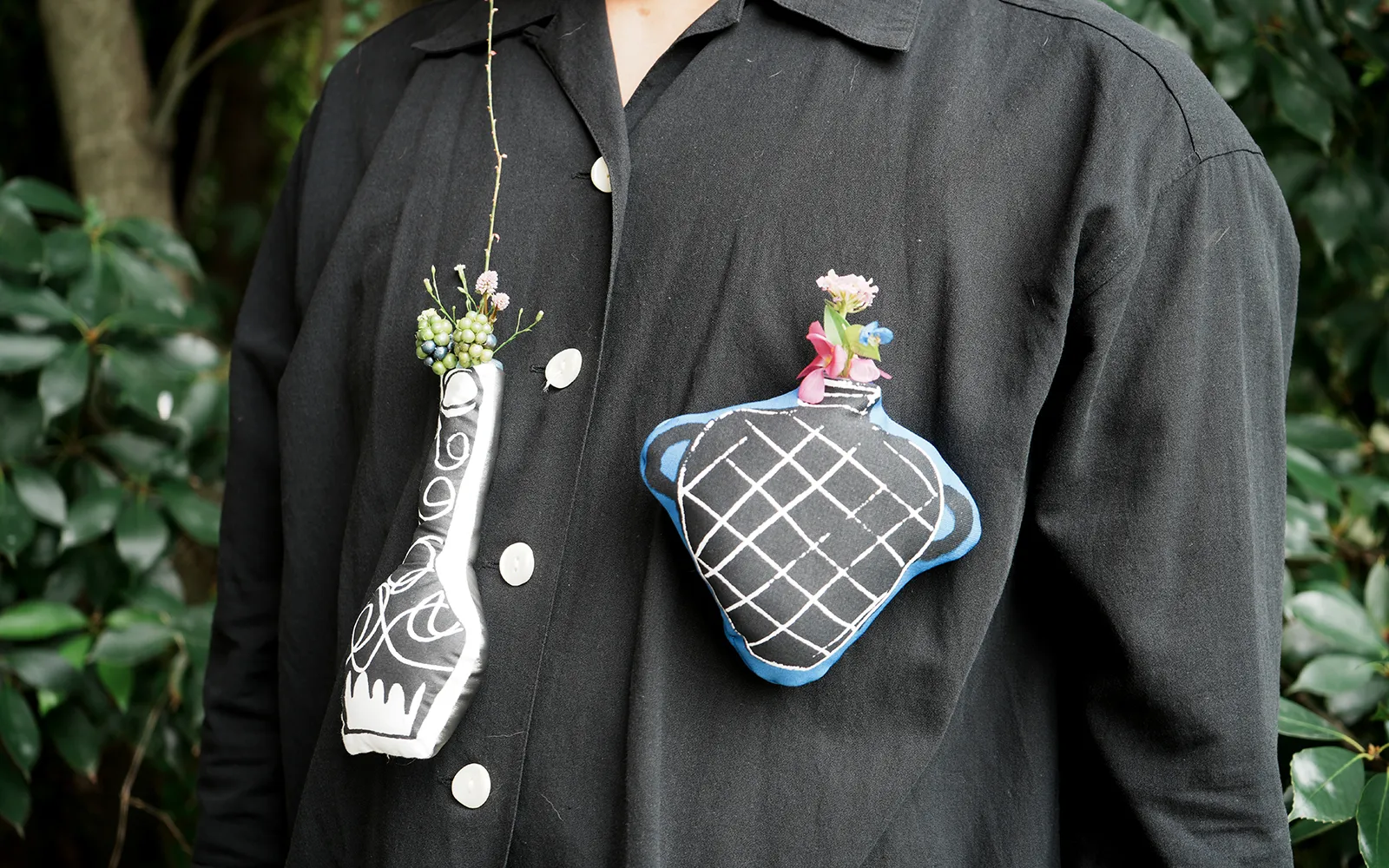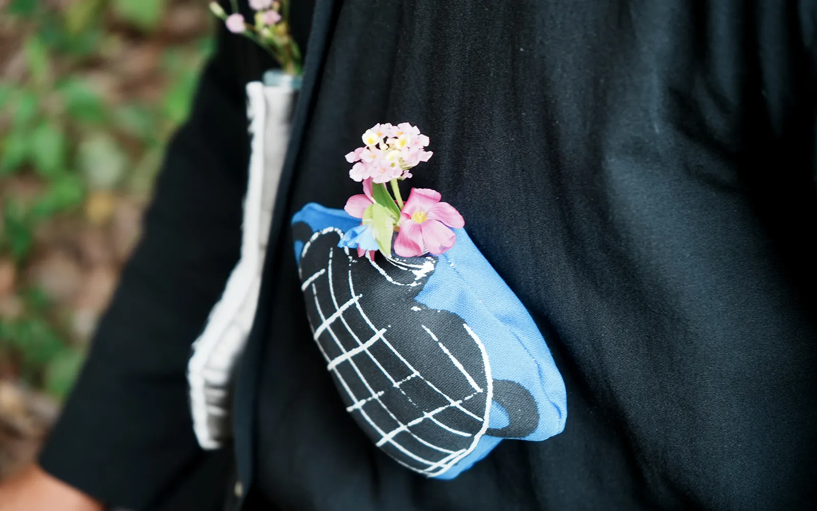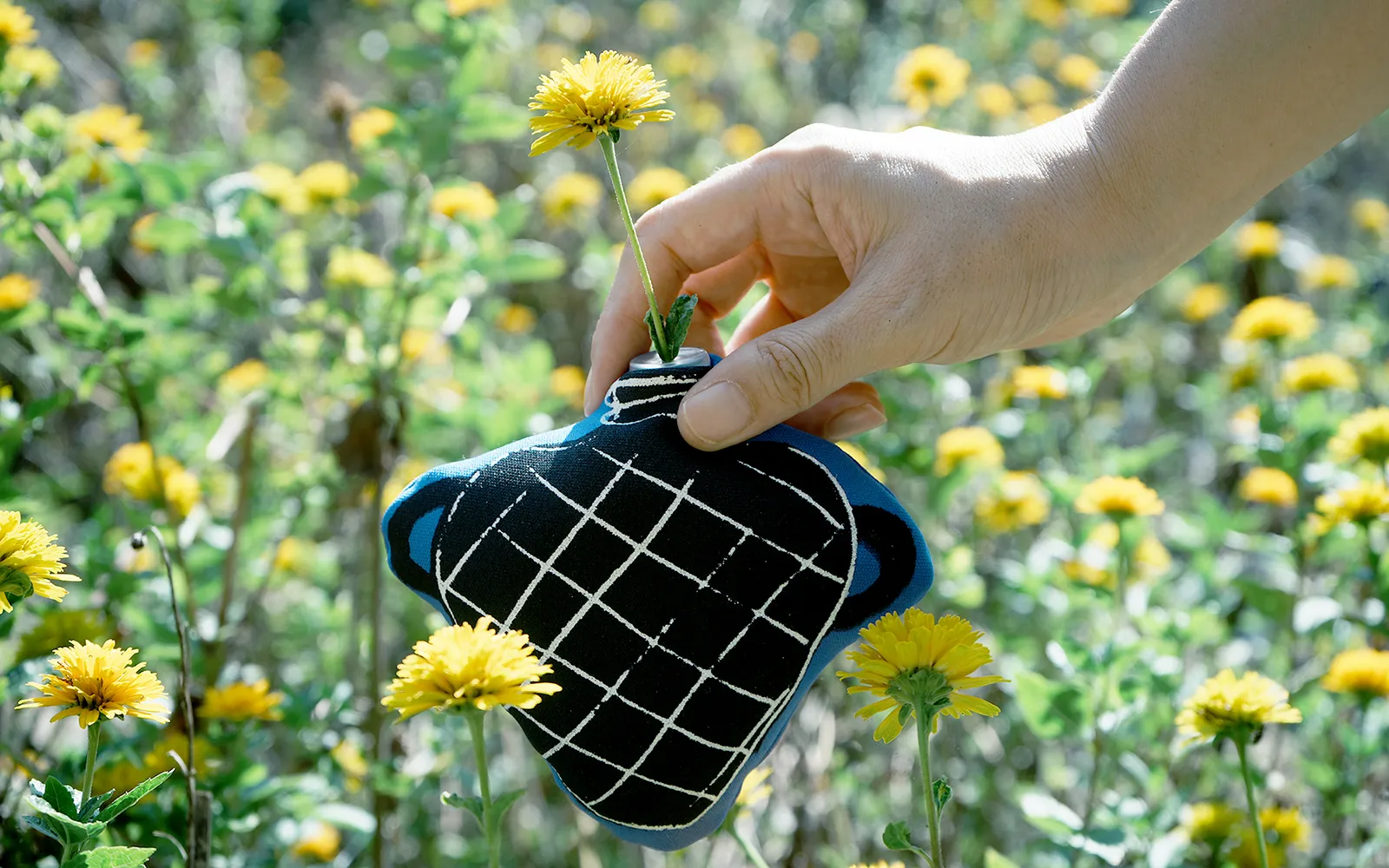 花を摘み愛でること、それは好奇心を持って自然を見つめ感性と対話し、同時に自分の置かれた身近な環境を把握して行く行為です。日常生活の中に「花を摘む」と言う目的意識を持つことで世界は違った物に見えて来るかもしれません。小さな美との出会いに備え、どこへでも持ち運べるヌイグルミのような壺を作りました。