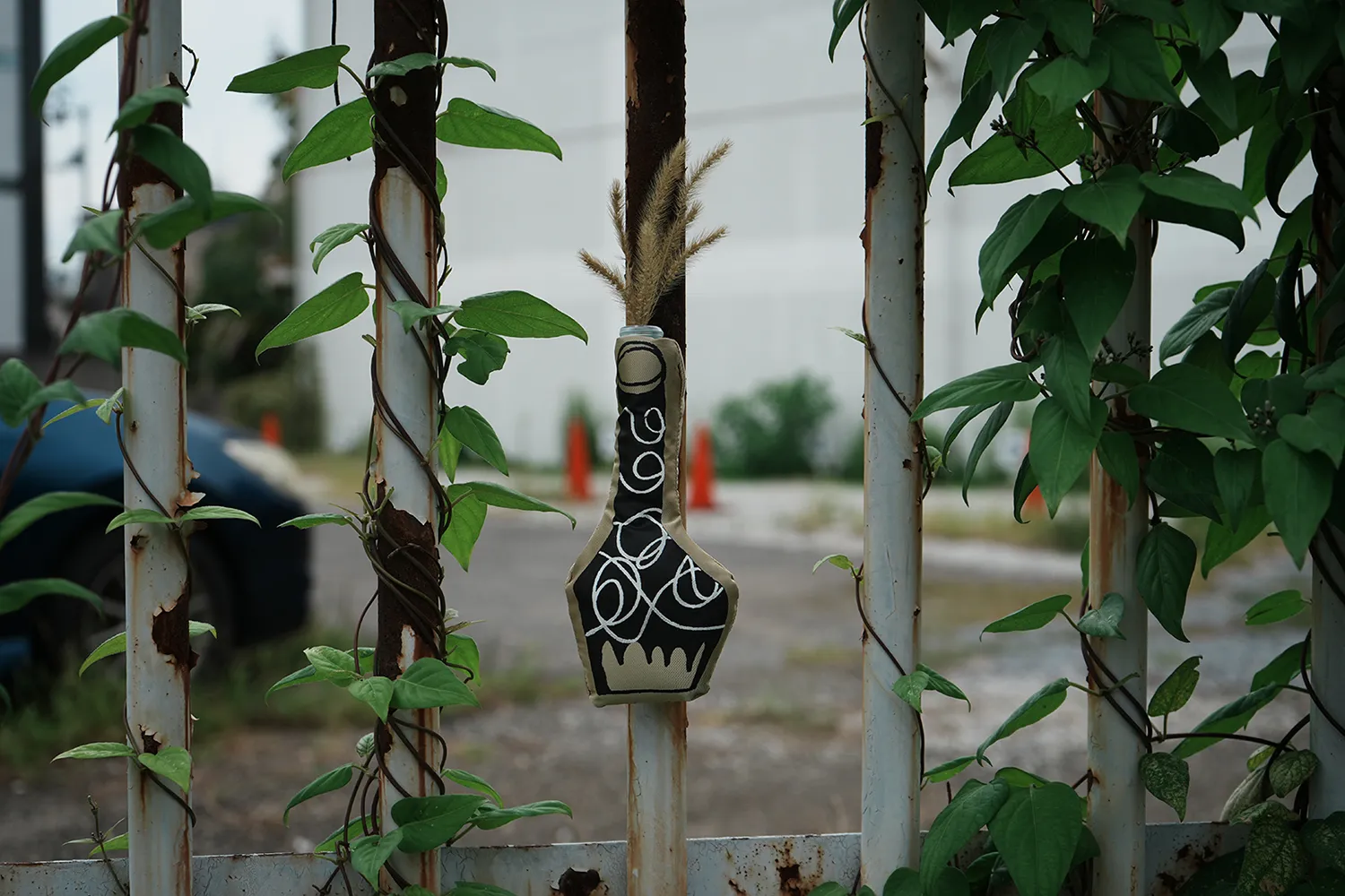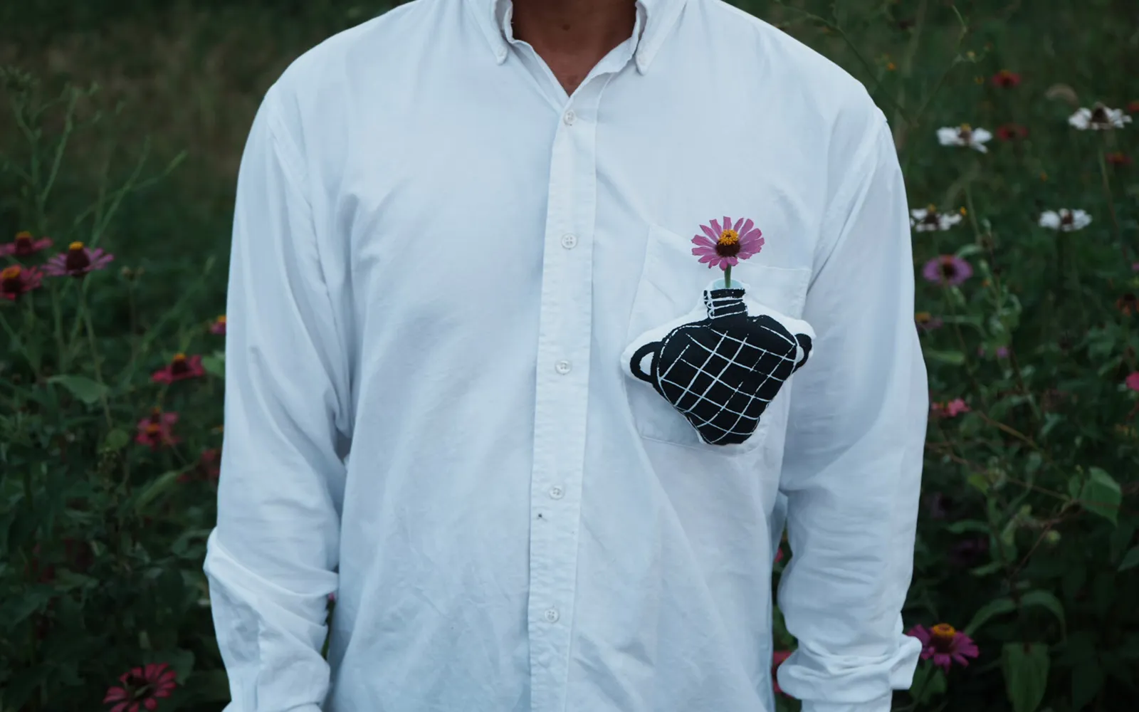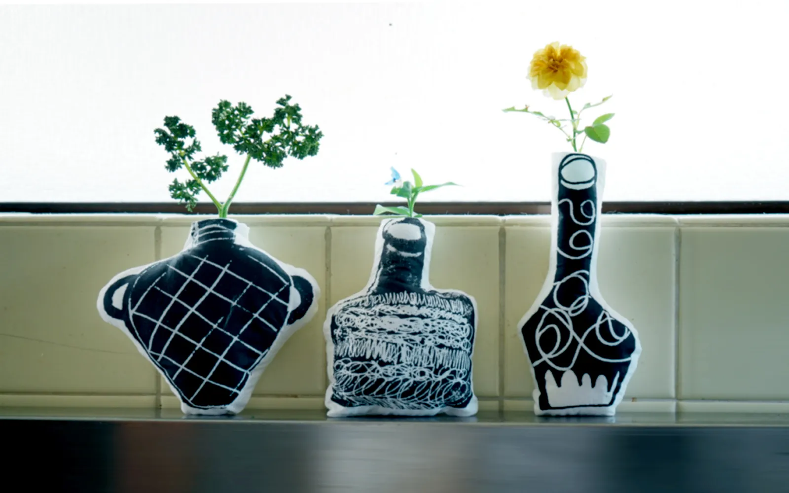 花を摘み愛でること、それは好奇心を持って自然を見つめ感性と対話し、同時に自分の置かれた身近な環境を把握して行く行為です。日常生活の中に「花を摘む」と言う目的意識を持つことで世界は違った物に見えて来るかもしれません。小さな美との出会いに備え、どこへでも持ち運べるヌイグルミのような壺を作りました。